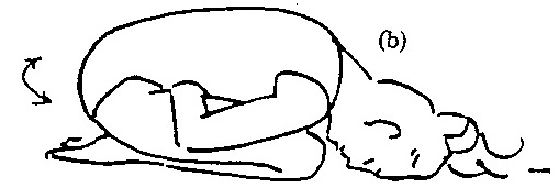 Zit in de Rots Houding. Kruis je handen over je navel. Laat je voorhoofd op de grond zakken. Zwaai de billen heen en weer als een slinger. Ga hiermee door gedurende 3 minuten.